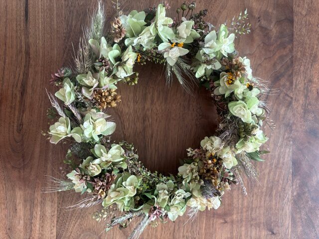 10月 柏葉アジサイを使って、秋の深まりを感じるリース